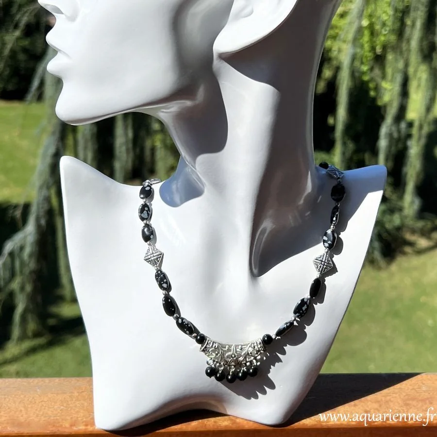 Pierre d’ancrage et d’équilibre, l’Obsidienne Flocon de Neige accompagne dans les moments de doute et d’obscurité, en aidant à retrouver courage et confiance. Elle éclaire les zones d’ombre, dissipe les illusions et favorise la clarté intérieure, afin de transformer les épreuves en tremplins d’évolution.