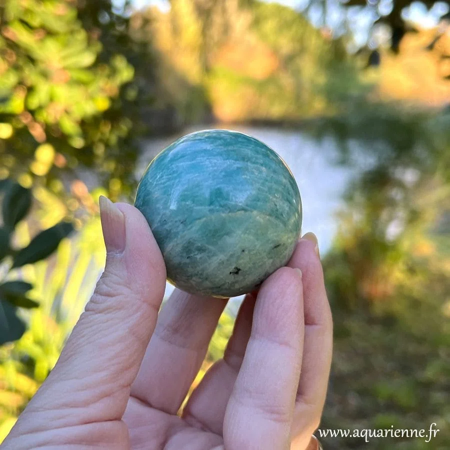 Une sphère d'amazonite peut être utilisée de différentes manières en lithothérapie. Voici quelques suggestions sur comment l'utiliser :