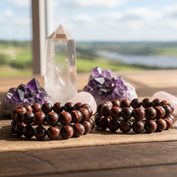 Sa couleur rouge-brun la connecte directement au chakra racine (Muladhara), situé à la base de la colonne vertébrale. C'est ce lien qui vous procure cet ancrage solide à la Terre et ce sentiment profond de sécurité. Elle stimule également le chakra du plexus solaire pour la vitalité et le chakra sacré pour l'énergie physique.
