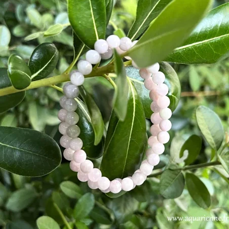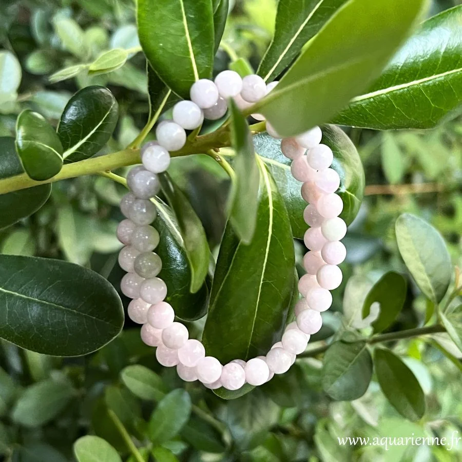 Ce bracelet en Kunzite du Brésil diffuse une énergie tendre et lumineuse. Ses perles de 6 mm qualité A ornent le poignet d’un éclat délicat.
