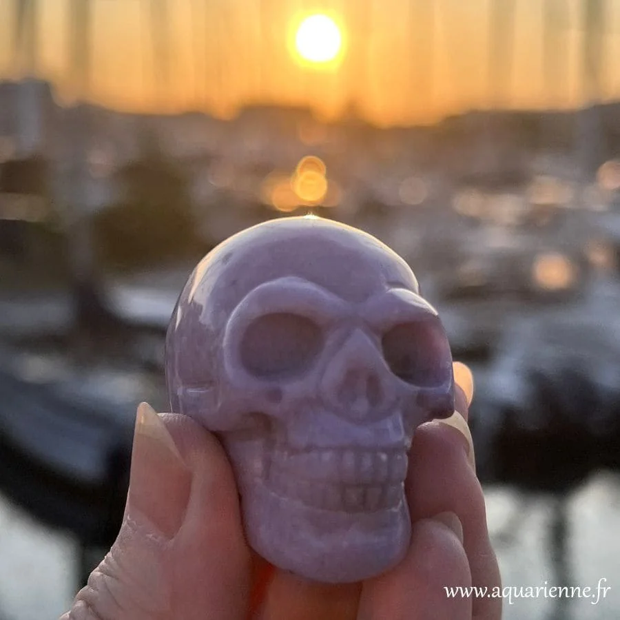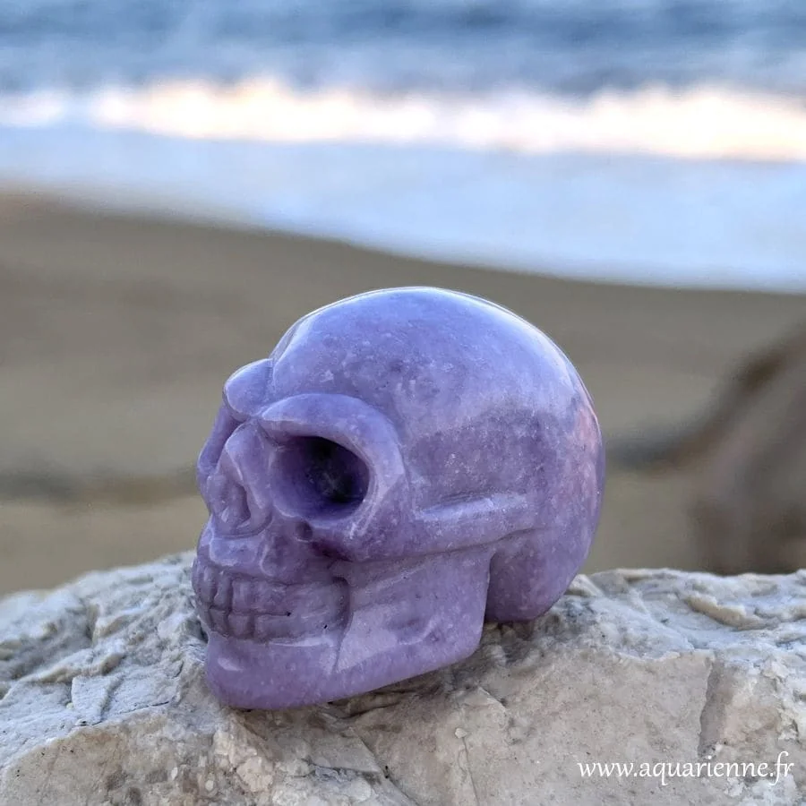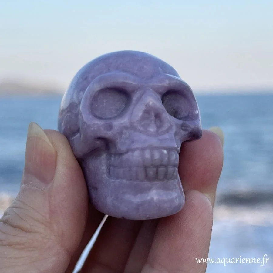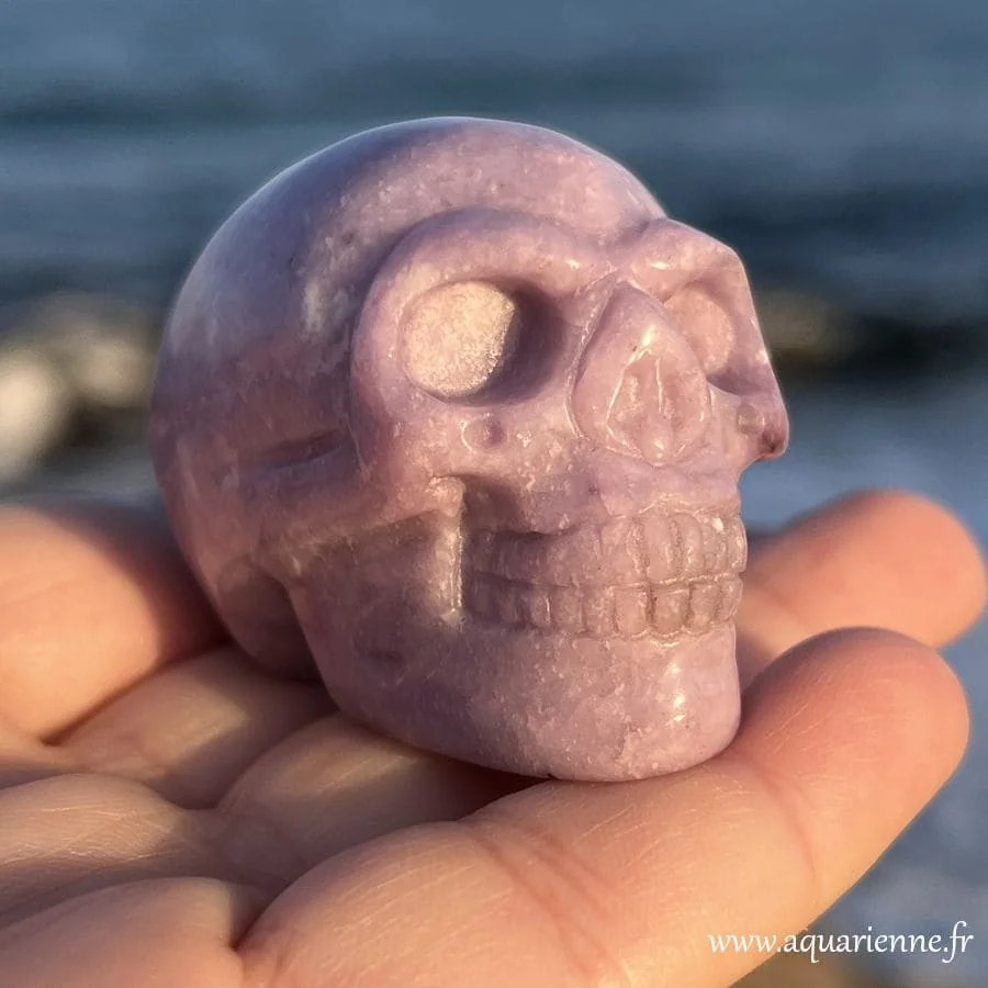 Ce crâne en lépidolite porte en lui une vibration rare, à la fois douce et profondément ancrée.