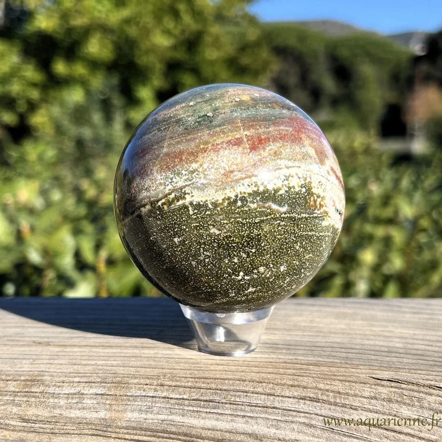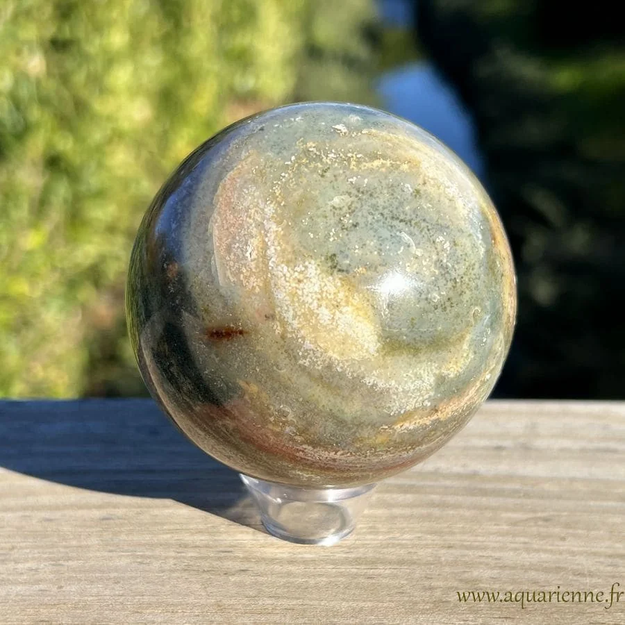 Laissez-vous séduire par ce joyau minéral et faites entrer chez vous un souffle de beauté et d'énergie positive. Cette sphère de Jaspe polychrome n'attend qu'une chose : rejoindre votre univers et enrichir votre quotidien. Pourquoi attendre ? Offrez-vous dès aujourd’hui cette pièce unique !