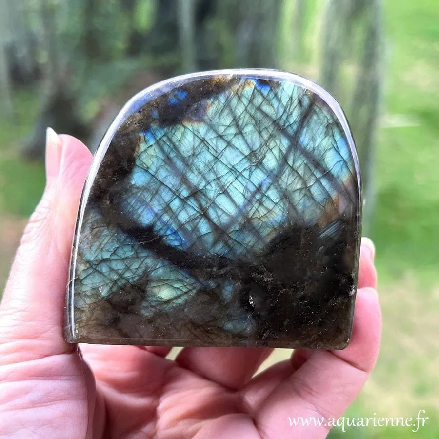 Longtemps considérée comme une pierre magique, la Labradorite est utilisée depuis des siècles pour développer les aptitudes mentales et intuitives. Sous son apparence uniforme de couleur foncée, elle cache des couleurs chatoyantes et dévoile des inclusions colorées lorsqu’elle est éclairée. Porteuse de Lumière, elle dissipe les ténèbres.