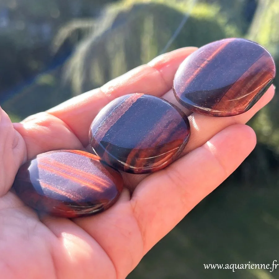 L’énergie rouge de cet Œil de Tigre aide à accéder à son pouvoir personnel et rappelle qu’il est sans danger de développer sa puissance personnelle et d’oser vivre sa souveraineté. Pour ceux qui traversent une période difficile, qui se sentent émotionnellement vulnérables, l’Œil de Taureau offre son soutien et sa protection, encourage à ne pas baisser les bras.