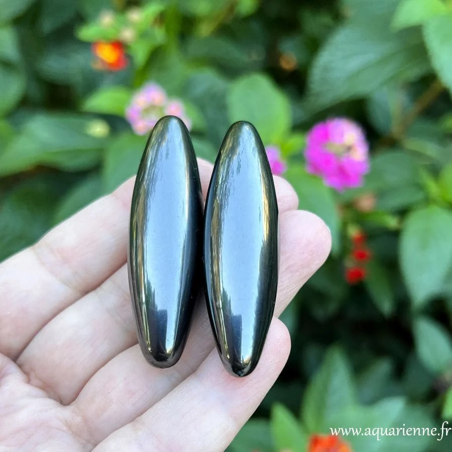 Leur forme allongée et lisse facilite la prise en main et permet de les faire “danser” l’une contre l’autre : une manière ludique de ressentir la force d’attraction et de répulsion naturelle du magnétisme pour se libérer du stress.