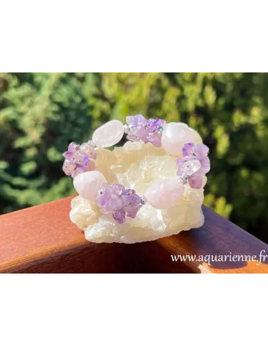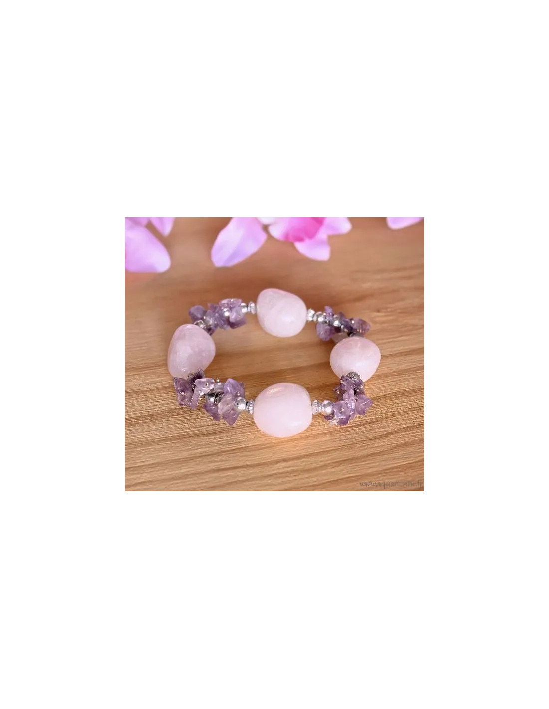 Ce bracelet allie les vertus apaisantes du Quartz Rose et les propriétés harmonisantes de l'Améthyste pour favoriser l'équilibre émotionnel et la sérénité intérieure, vous offrant ainsi de précieux bienfaits lorsque vous le portez.